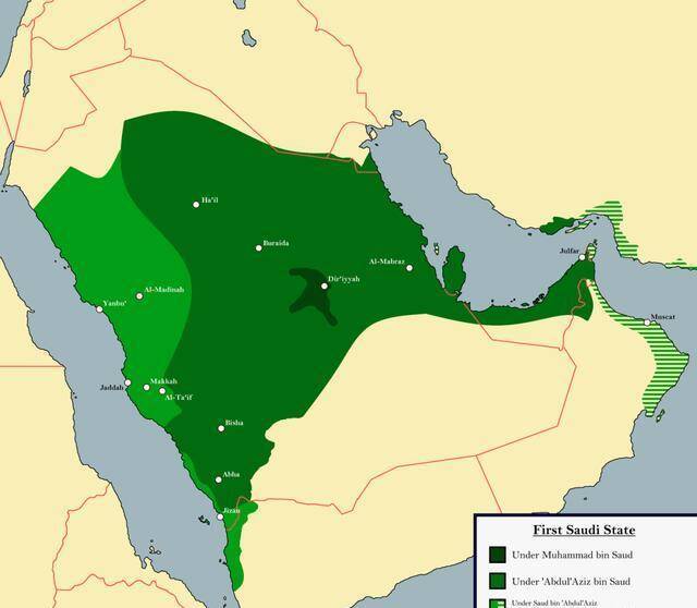 瓦哈比的教义不符合上层统治者需求,他遭到所在地酋长的驱逐,但阿拉伯半岛政治版图稀碎,大大小小的政治家族在此生存、博弈。暗潮涌动之下,瓦哈比在1744年来到半岛中部只有70户居民的德拉伊耶酋长国,沙特家族统治着这里。